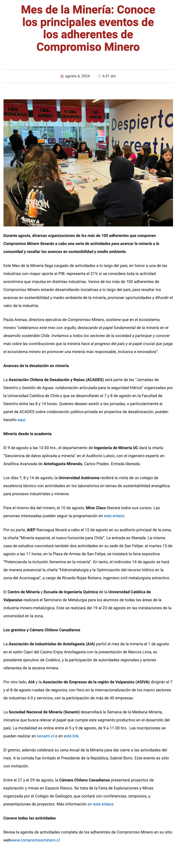 Mes de la Minería: Conoce los principales eventos de los adherentes de Compromiso Minero - (g5noticias.cl)