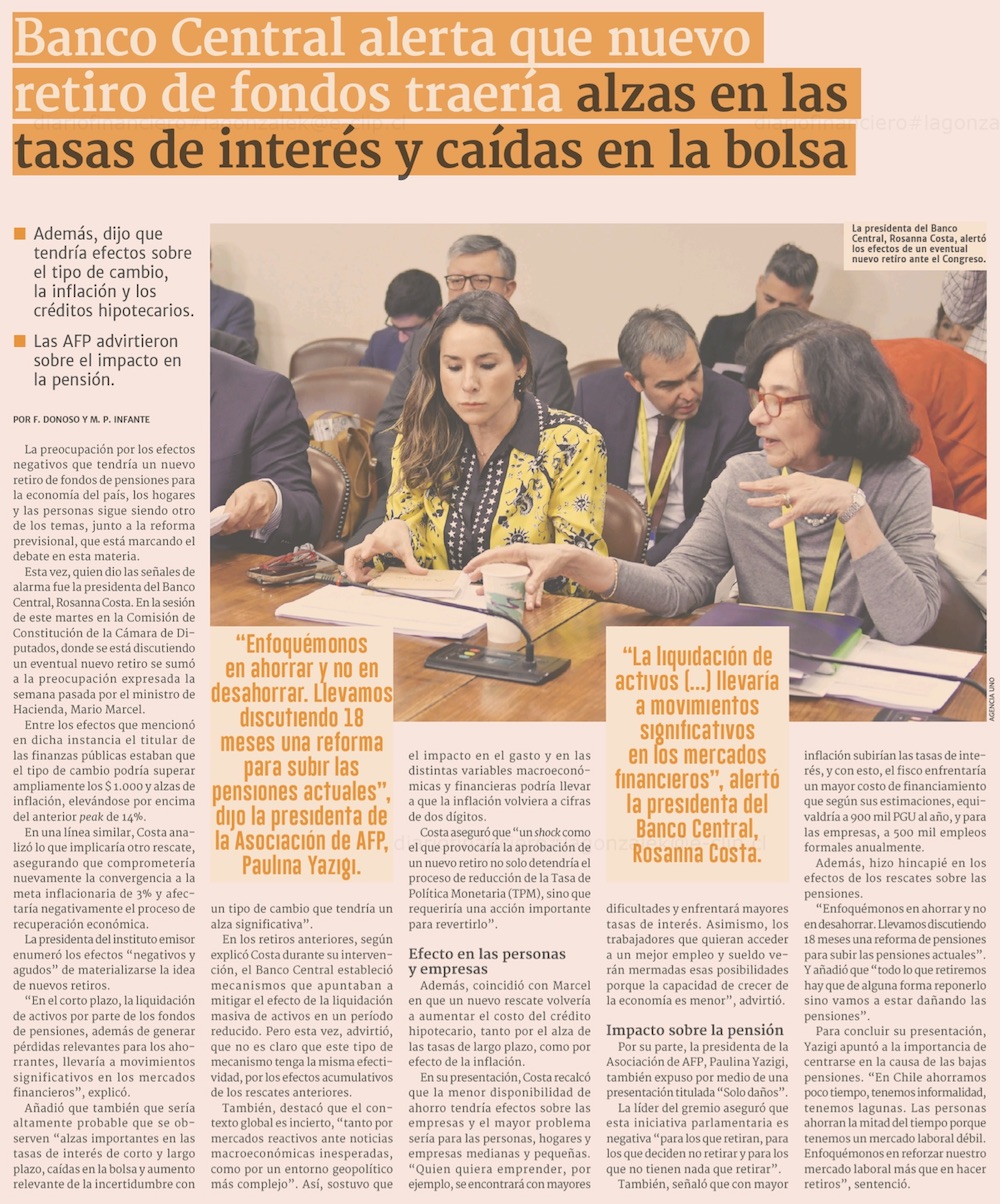 Banco Central advierte que con cualquiera de las iniciativas de nuevos retiros que se debaten "hay un efecto negativo en la economía" - (Pulso)