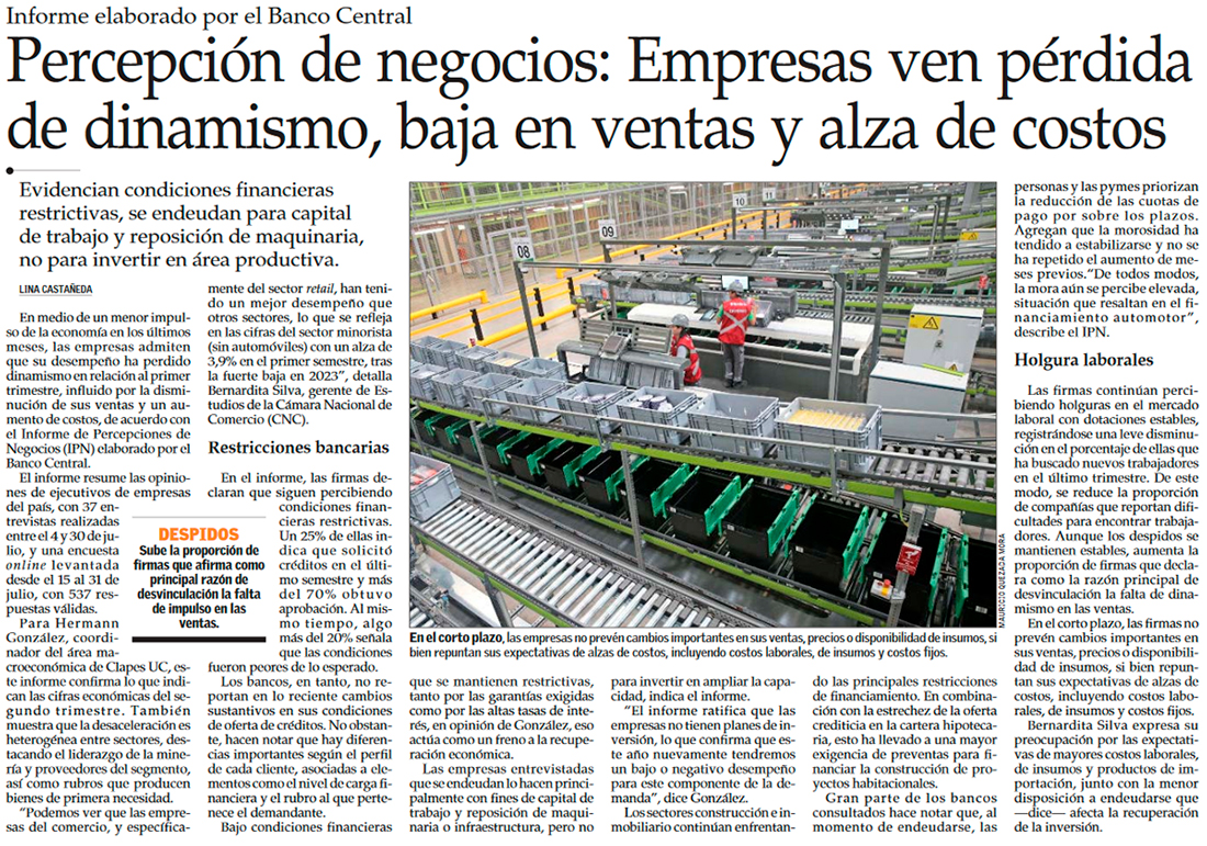 Empresas reportan un desempeño más bajo en el segundo trimestre y prevén alzas de costos - (Diario Financiero)