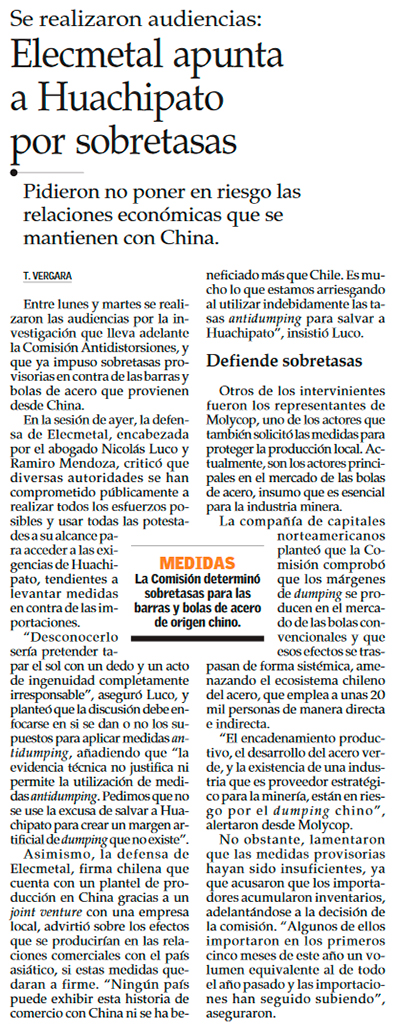 Maratónica audiencia por sobretasas a bolas de acero chino - (Diario Financiero)