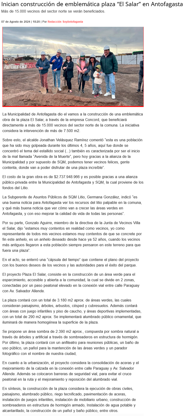 Municipalidad inicia obras de Plaza El Salar - (El Mercurio de Antofagasta)