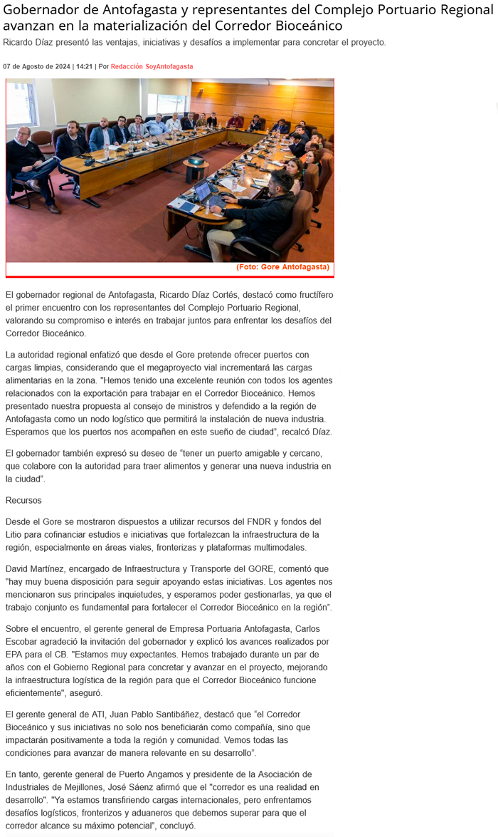 Cargas reducirían hasta 10 días su transporte y 40% sus costos por el Corredor Bioceánico - (El Mercurio de Antofagasta)