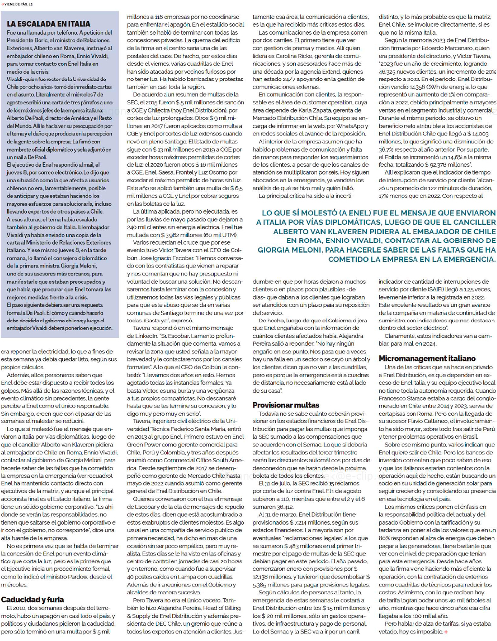 La semana más oscura de Enel - (Pulso)