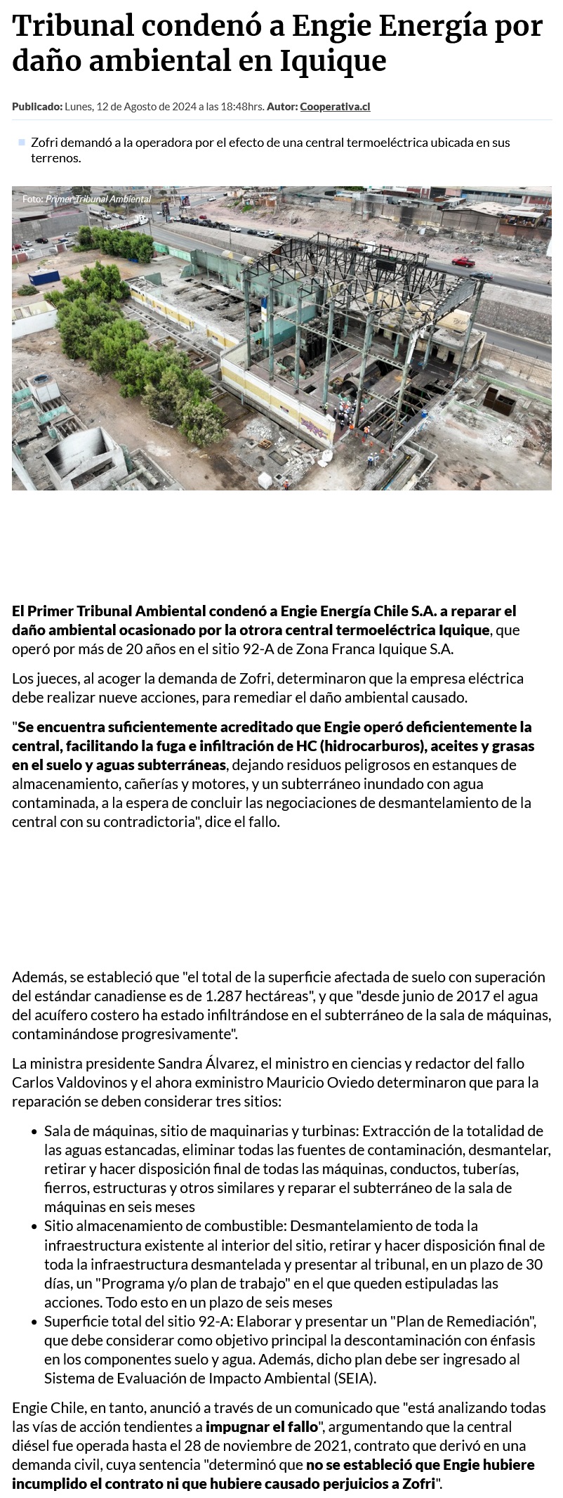 Condenan a ENGIE por daño ambiental en excentral en Zofri - (Estrella de Iquique)