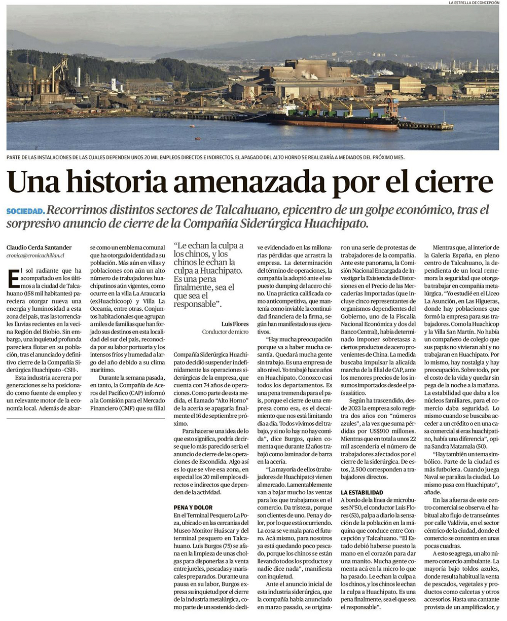 Gobierno alista plan regional para mitigar impacto de cierre de Siderúrgica Huachipato - (El Sur)