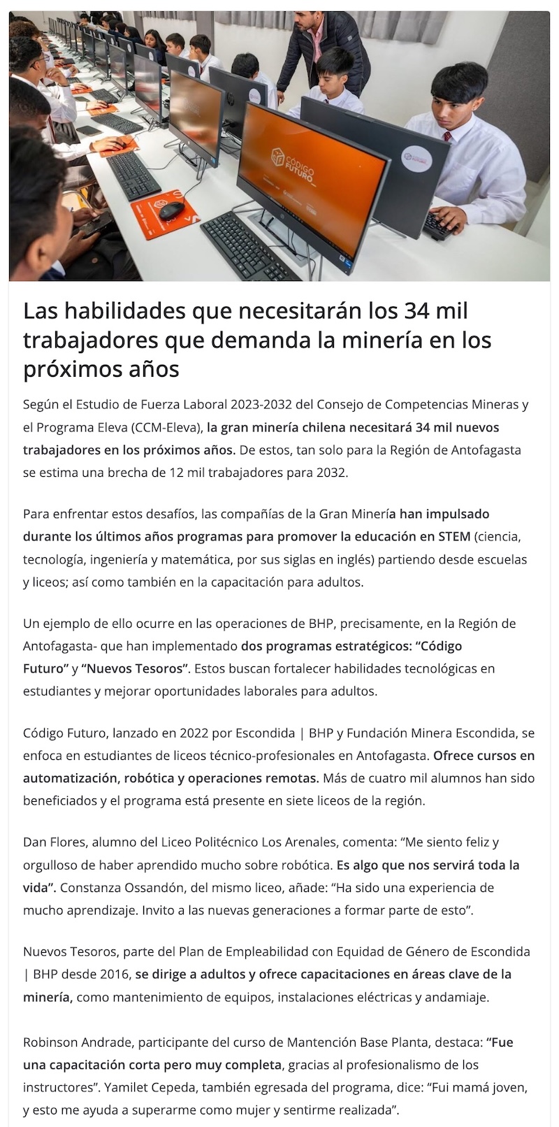 La Minería Chilena invierte en Educación y Capacitación para satisfacer la demanda de 34 mil trabajadores - (davidnoticias)