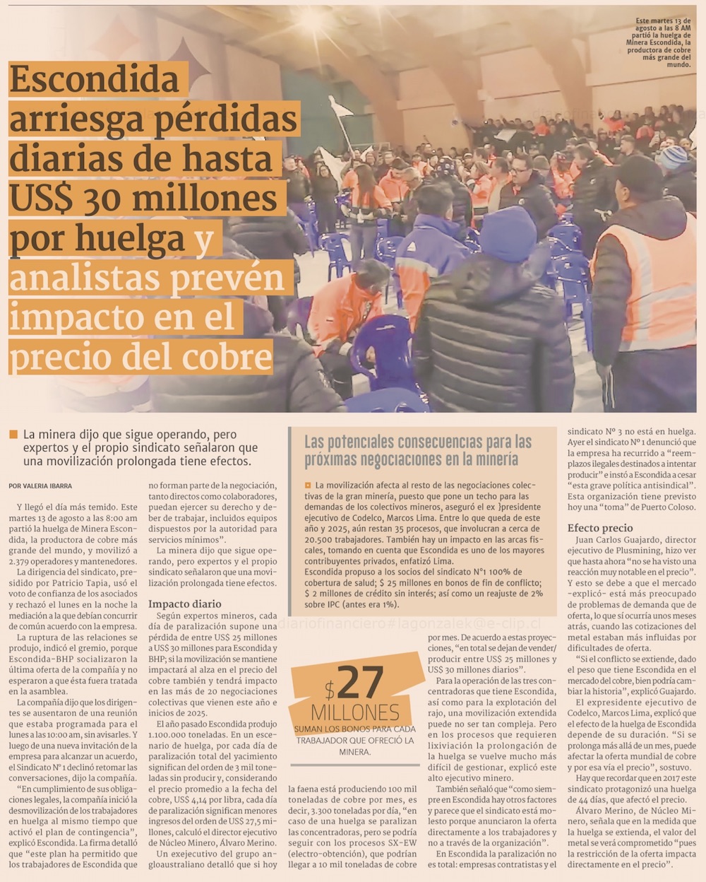 Minera Escondida en huelga causaría pérdidas millonarias - (La Segunda)