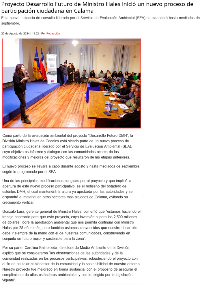 Proyecto Desarrollo Futuro de DMH inicia nuevo proceso de Participación Ciudadana - (El Mercurio de Antofagasta)