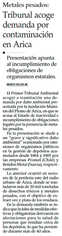 Mamitas del Plomo demandan al Estado de Chile por daño ambiental - (Estrella de Arica)