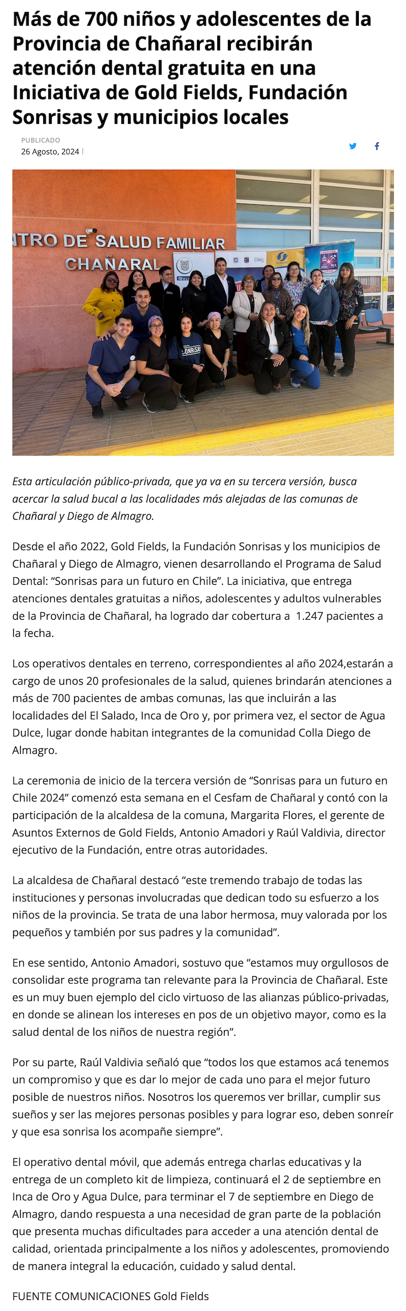 Más de 700 niños de la Provincia de Chañaral recibirán atención dental - (El Diario de Atacama)