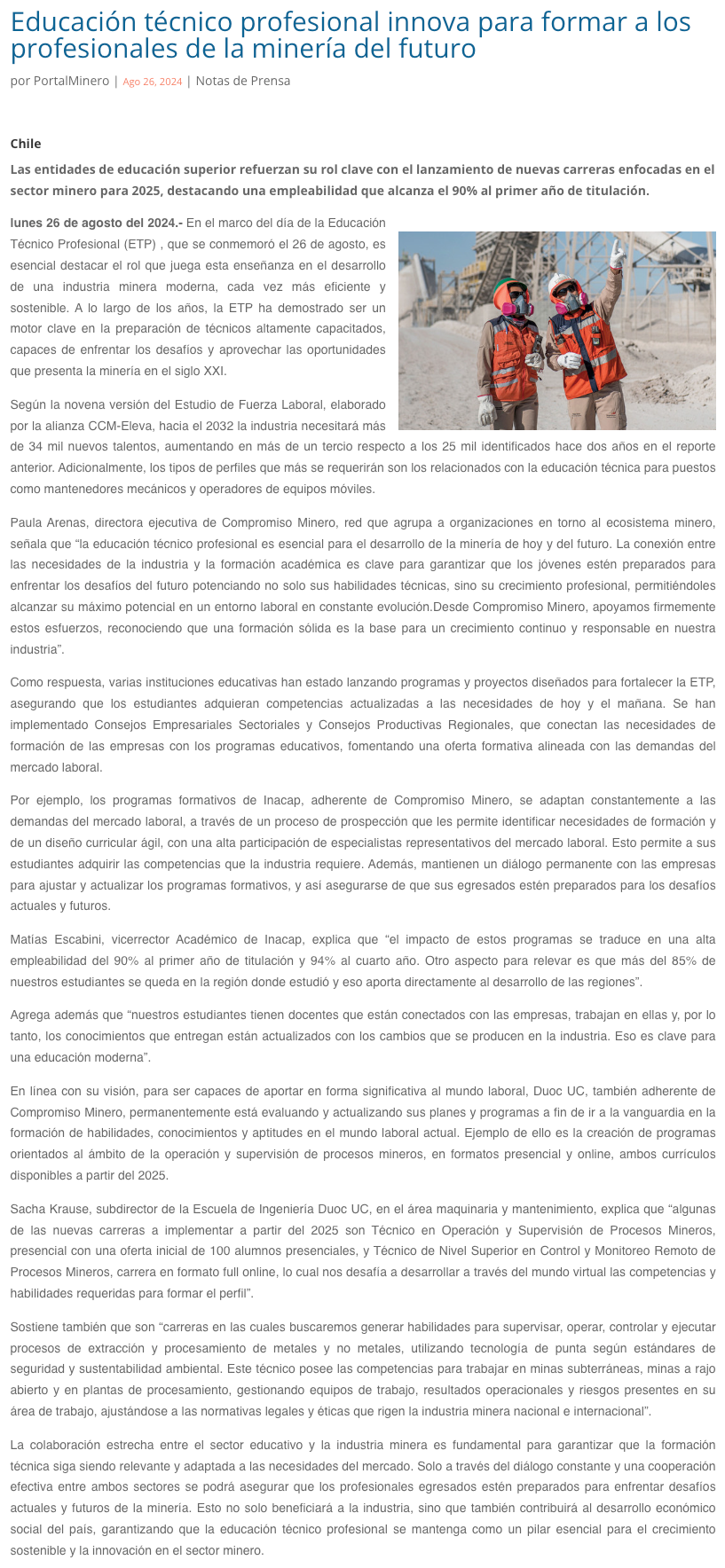 Educación Técnico Profesional: Formando a los Profesionales de la Minería del Futuro - (mineriayfuturo.cl)