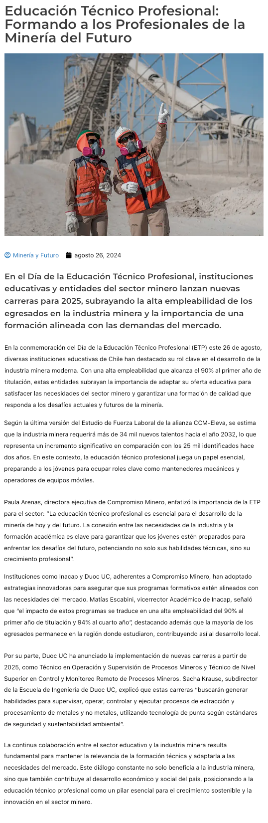 Educación técnico profesional innova para formar a los profesionales de la minería del futuro - (portalminero)