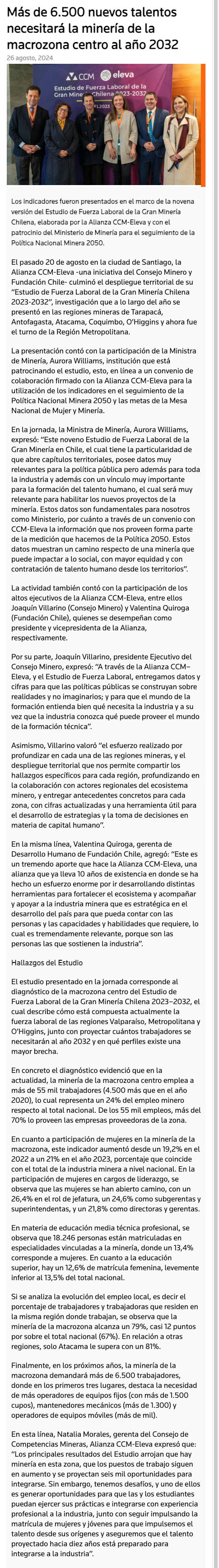 Alianza CCM-Eleva entrega proyecciones de demanda de trabajadores mineros para macrozona centro - (mch.cl)