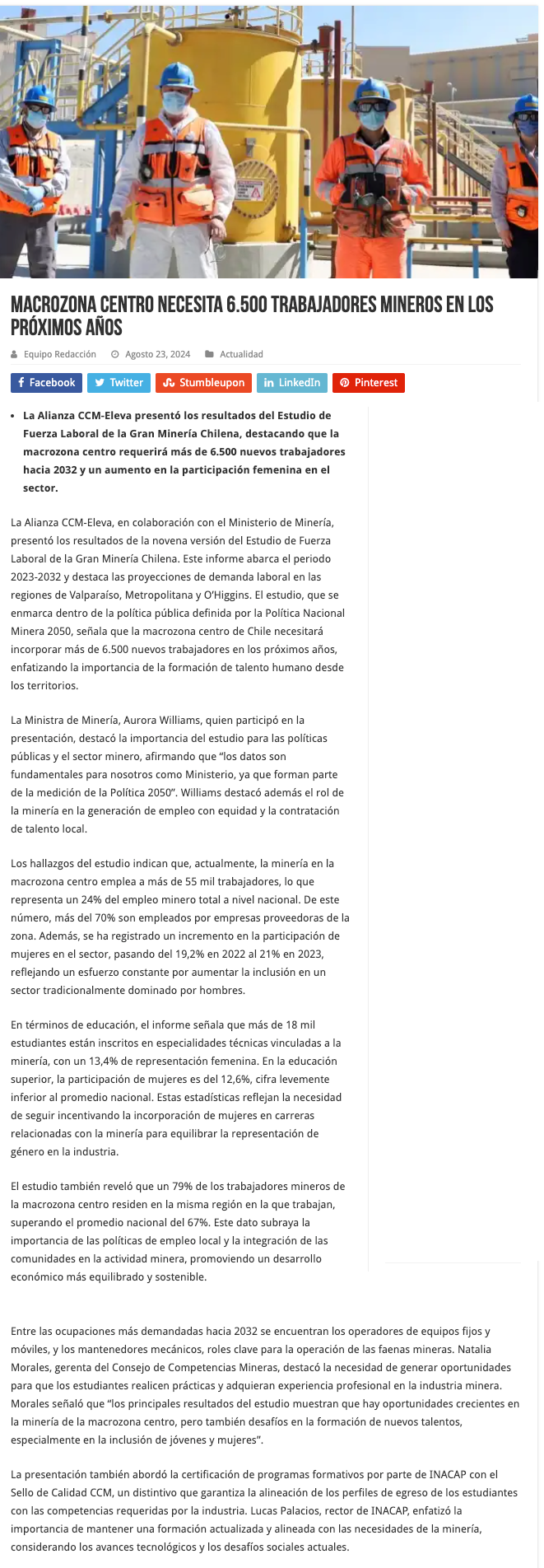 Alianza CCM-Eleva entrega proyecciones de demanda de trabajadores mineros para macrozona centro - (mch.cl)