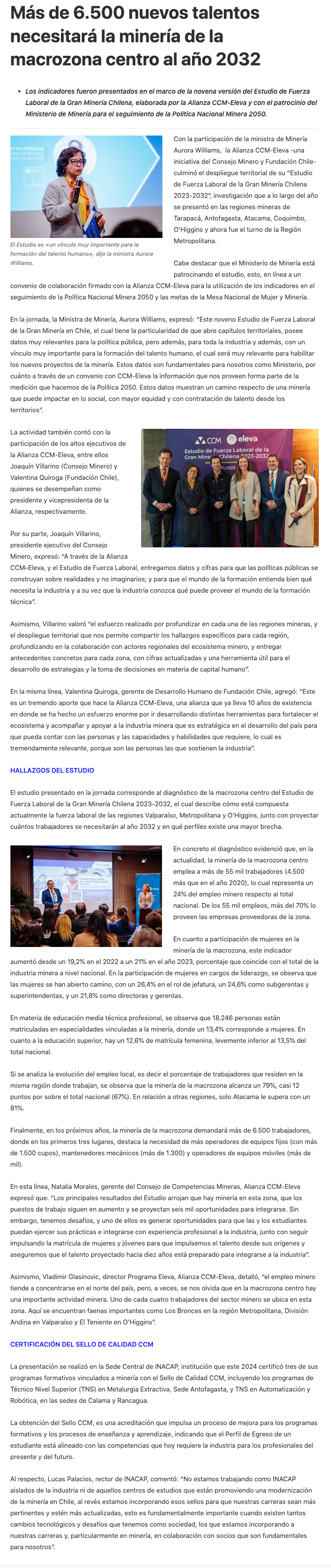 Alianza CCM-Eleva entrega proyecciones de demanda de trabajadores mineros para macrozona centro - (mch.cl)