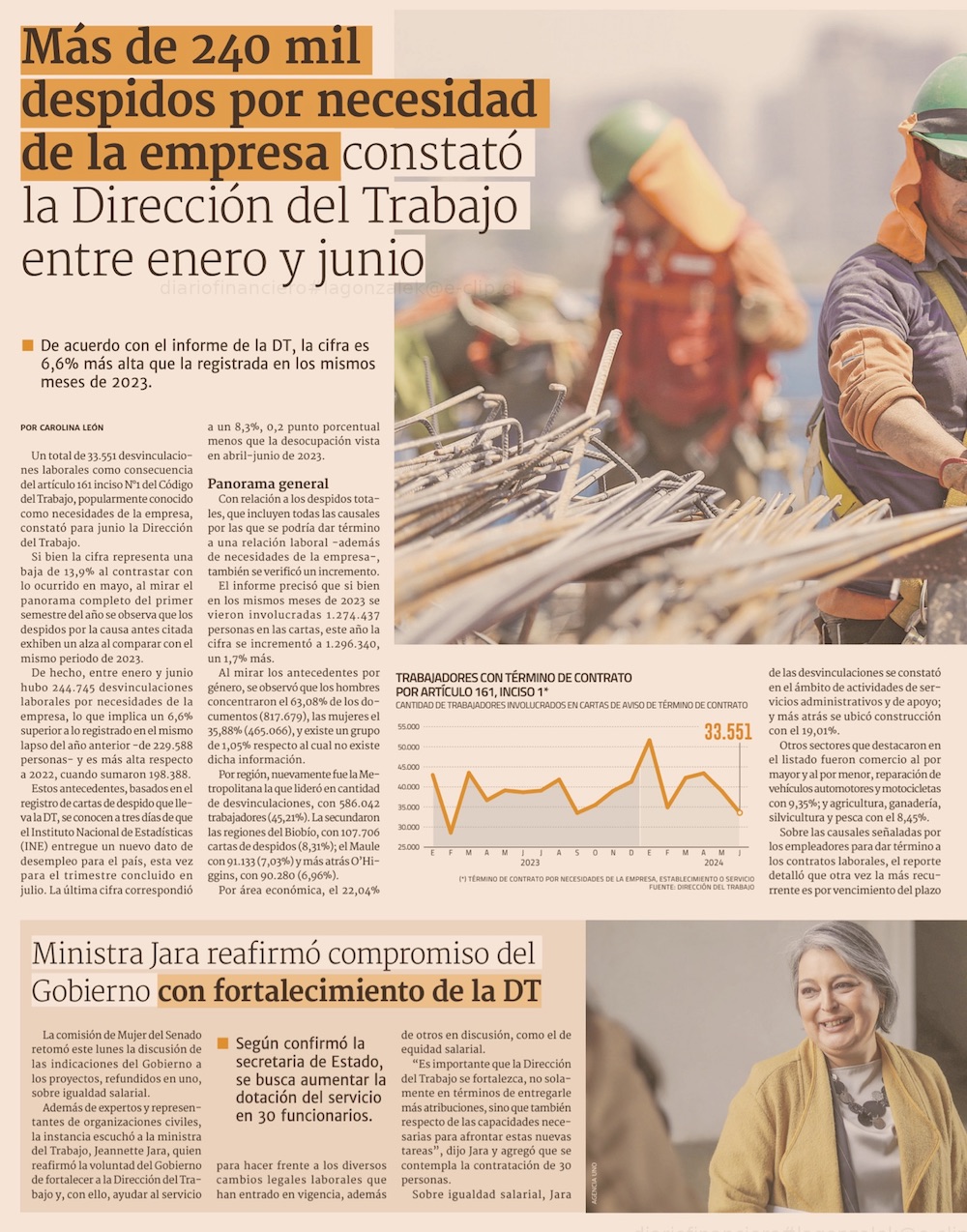Despidos por necesidades suman 244 mil al 1er semestre, pero en últimos meses se desaceleran - (El Mercurio de Santiago)