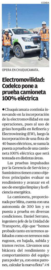 Chuquicamata realiza pruebas con camioneta 100% eléctrica: avances en electromovilidad - (soycalama)