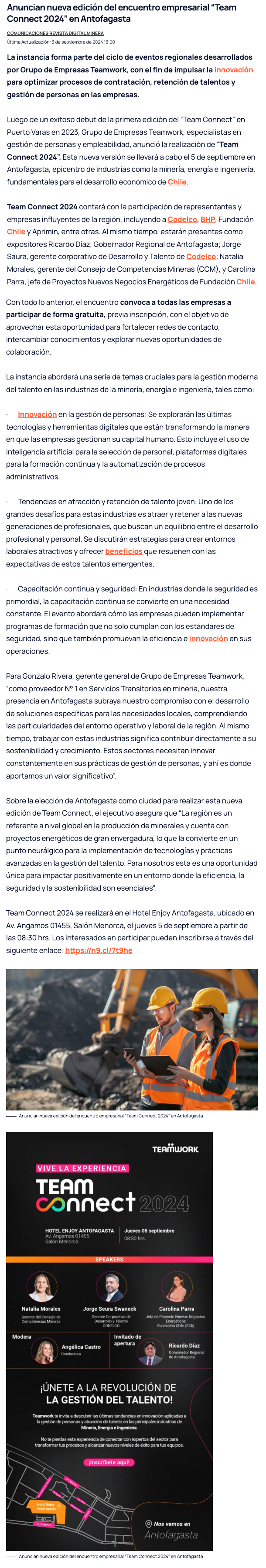 Anuncian nueva edición de encuentro “Team Connect 2024” en Antofagasta - (chileminero.cl)