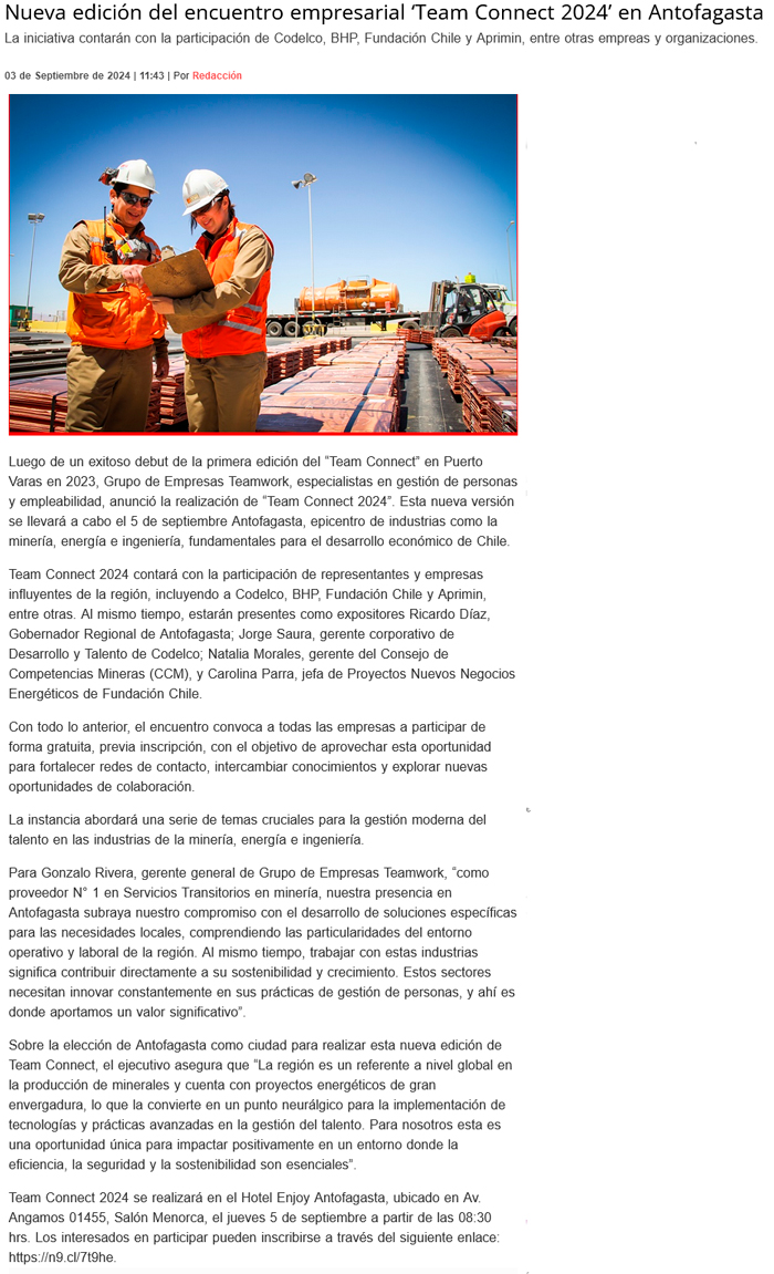 Anuncian nueva edición de encuentro “Team Connect 2024” en Antofagasta - (chileminero.cl)
