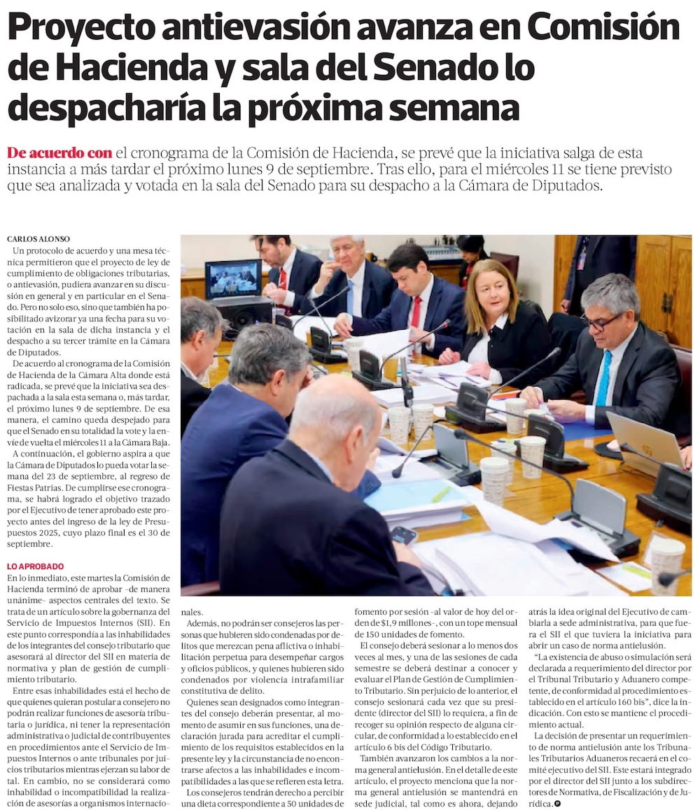 Antievasión: Indicación impediría a bancos prestar a clientes con problemas tributarios - (El Mercurio de Santiago)