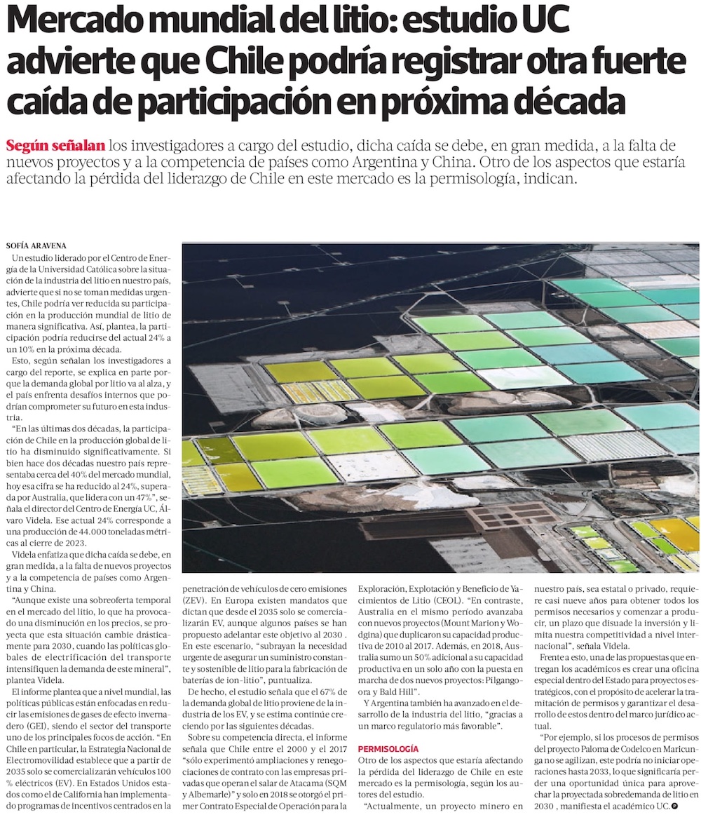 Advierten por caída de Chile en el mercado global del litio - (El Mercurio de Santiago)