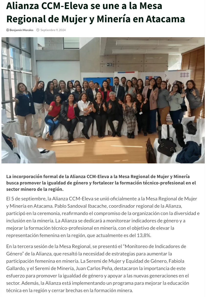 Alianza CCM-Eleva se suma a Mesa Regional de Mujer en Minería en Atacama - (norteonline.cl)