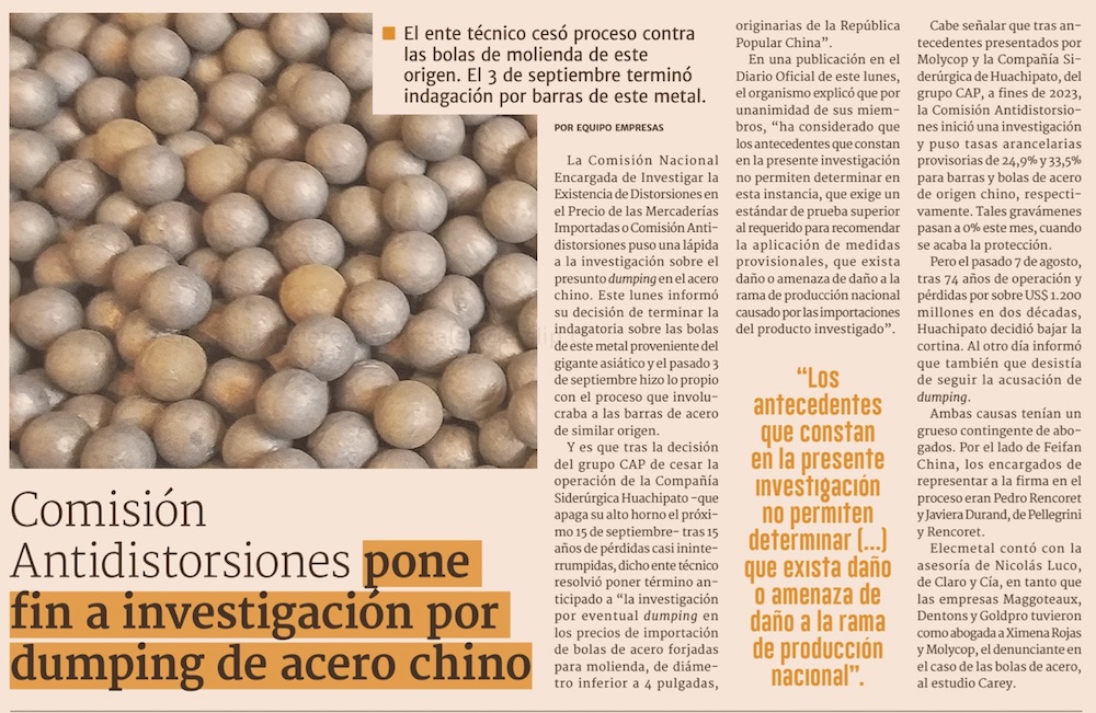 Comisión cierra investigación por bolas de acero chinas - (El Mercurio de Santiago)