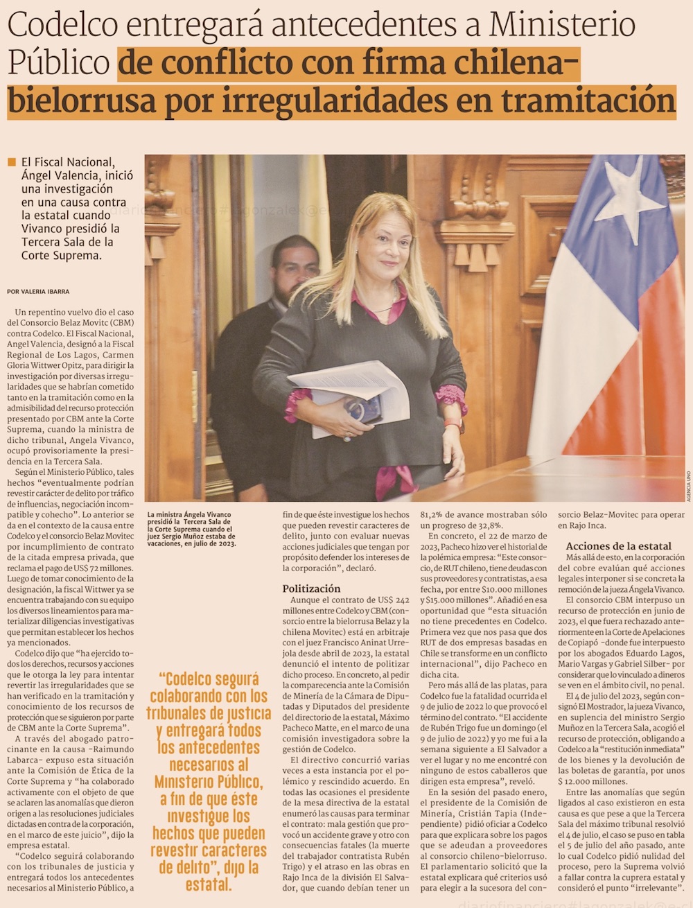 Abren nuevo caso por eventual tráfico de influencias y cohecho de la jueza en causa de Codelco y consorcio bielorruso - (El Mercurio de Santiago)