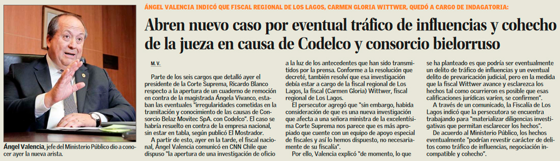 Codelco entregará antecedentes a Ministerio Público de conflicto con firma chilena-bielorrusa por irregularidades en tramitación - (Diario Financiero)