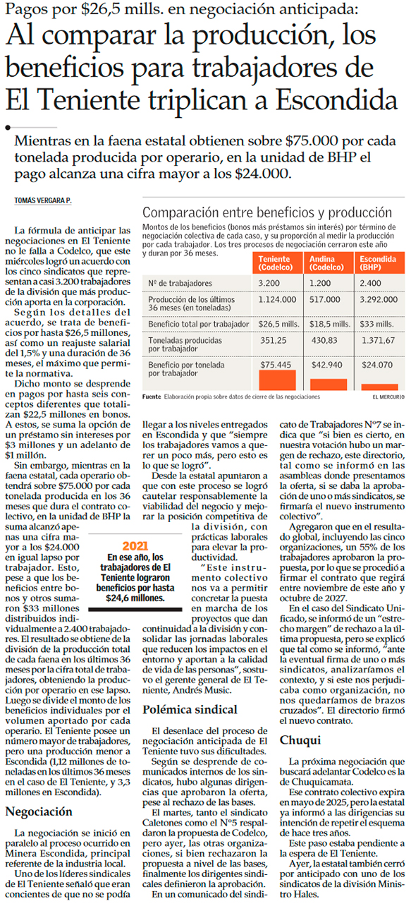 Sindicato 5 de Codelco El Teniente aprueba negociación colectiva anticipada - (El Tipógrafo)
