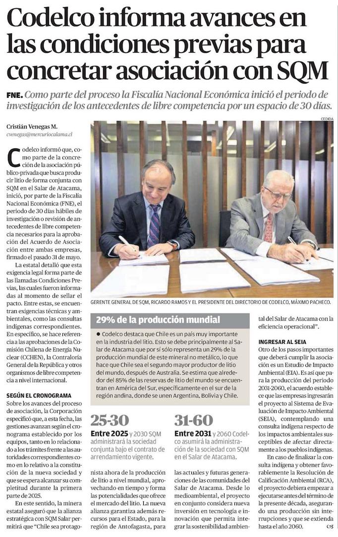 Codelco y SQM avanzan en el cumplimiento de las condiciones previas para concretar inédita asociación pública privada - (chanarcillo.cl)