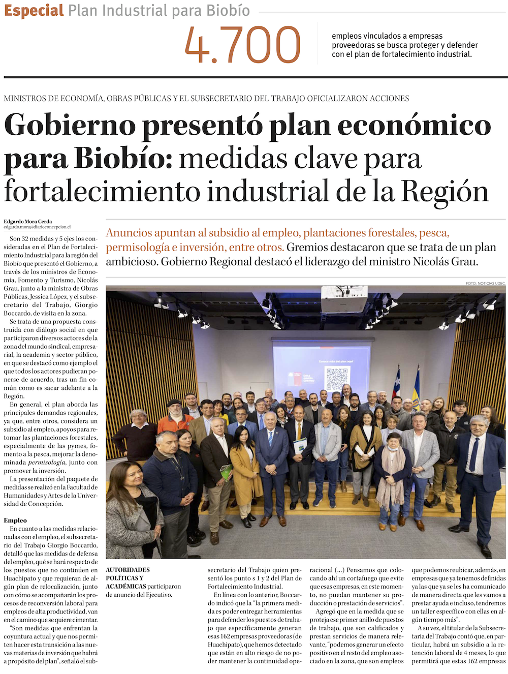 Gobierno busca destrabar US$ 6.800 millones en proyectos de inversión en Biobío para frenar crisis tras cierre de Huachipato - (Diario Financiero)