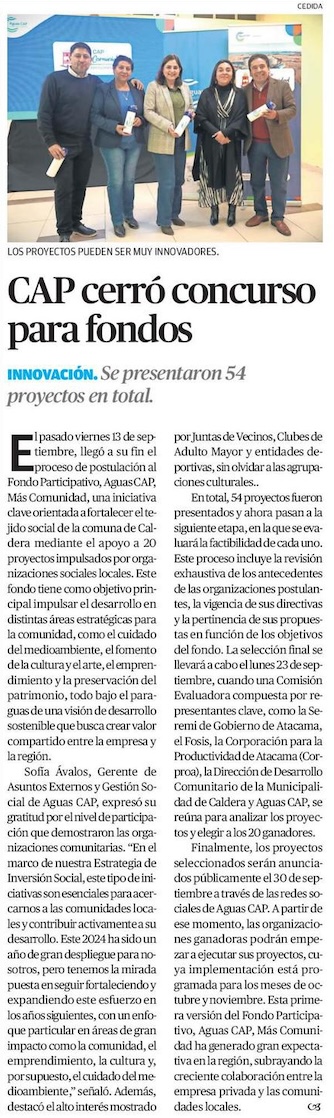 Con la participación de más de 50 organizaciones sociales Aguas CAP cerró las postulaciones a su primer fondo concursable - (Nostálgica Online)