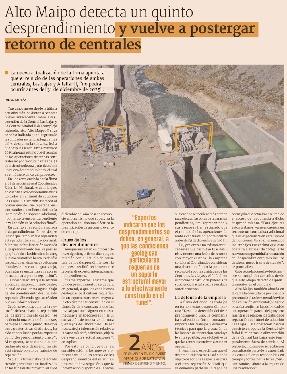 Alto Maipo posterga regreso a operación hasta fines de 2025 - (El Mercurio de Santiago)