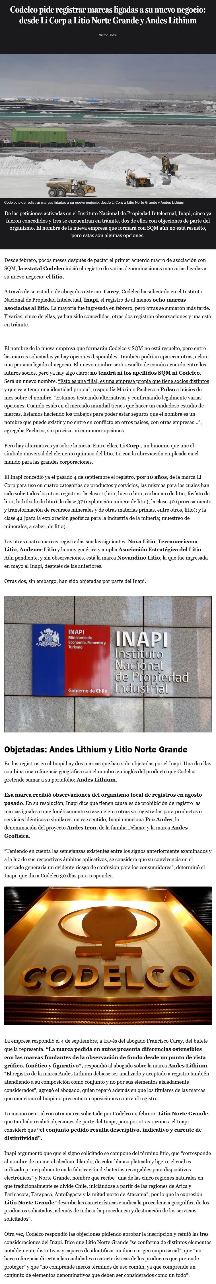 Codelco pide registrar marcas ligadas a su nuevo negocio: desde Li Corp a Litio Norte Grande y Andes Lithium - (Pulso)