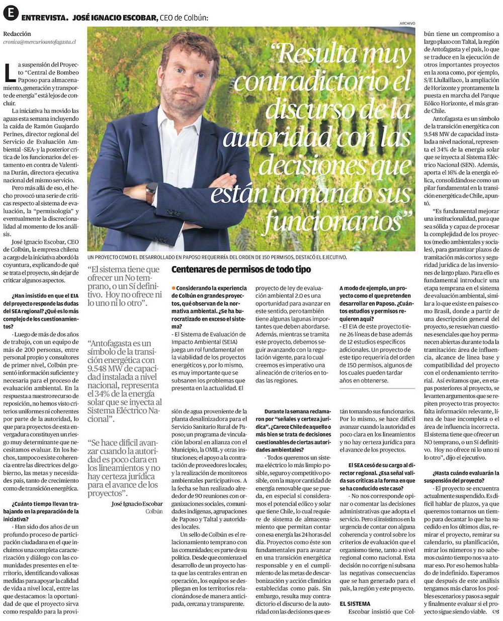 Gerente general de Colbún y el proyecto suspendido: "Antes de tres meses es muy difícil que tengamos alguna certeza de qué es lo que va a pasar" - (Pulso)