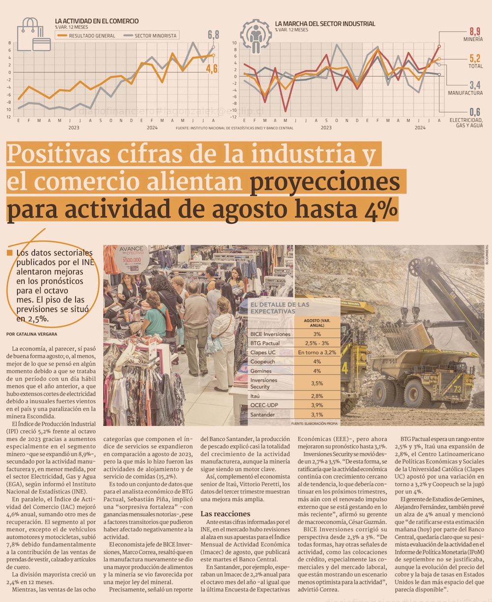 Economía tendría otro buen crecimiento en agosto, tras cifras de actividad sectorial - (Pulso)