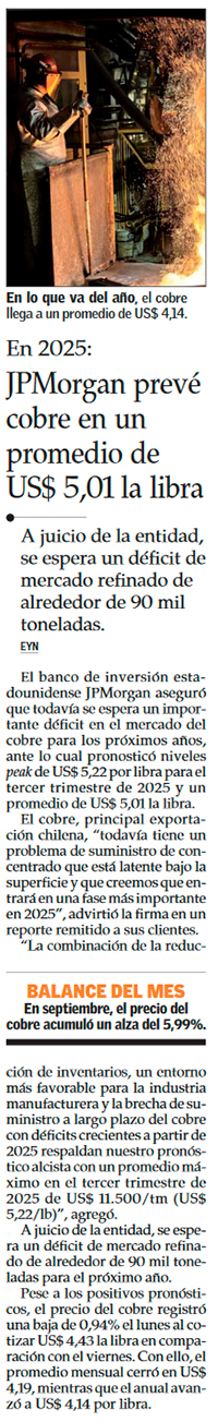 Cierre del tercer trimestre: cobre acumula alza de 3% y deja al dólar bajo los $900 - (Pulso)