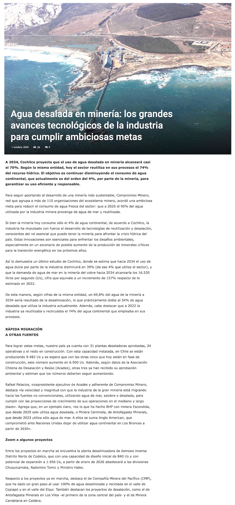 Agua desalada en minería: los grandes avances tecnológicos de la industria para lograr ambiciosas metas - (Maray Online)