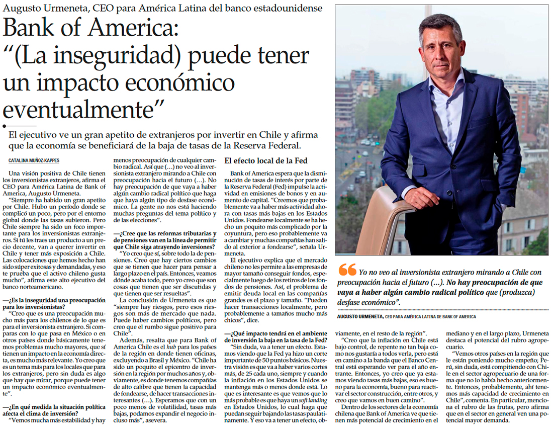 CEO de Credicorp Capital y su visión de Chile: “Los retos vienen por el crecimiento (económico)” - (El Mercurio de Santiago)