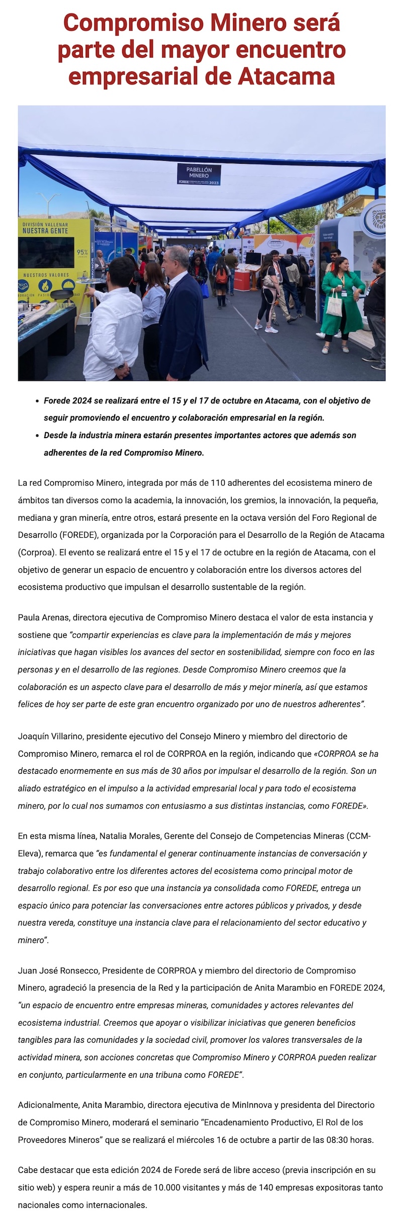Compromiso Minero será parte del mayor encuentro empresarial de Atacama - (g5noticias.cl)