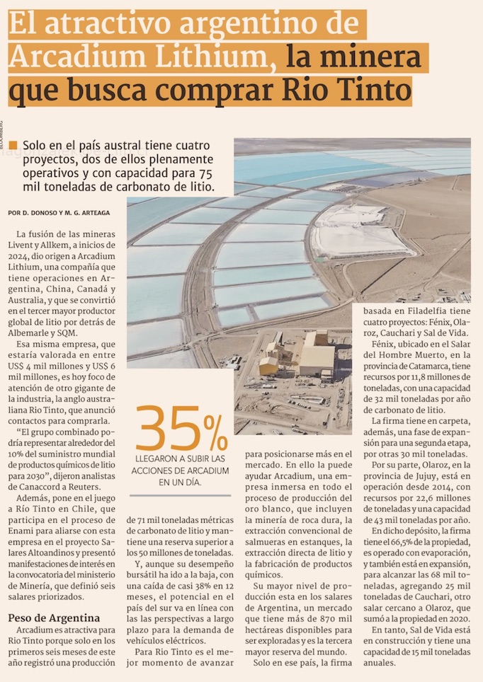 Arcadium Lithium, el tercer actor mundial del litio con presencia en Argentina que Rio Tinto busca adquirir - (Pulso)