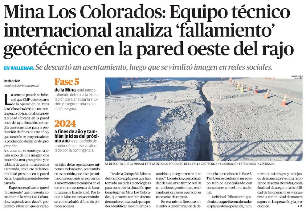 Falla en la Mina Los Colorados: investigan su origen en yacimiento - (soycopiapo)