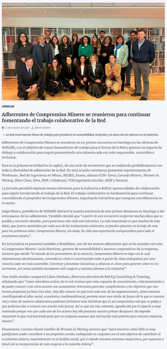 Compromiso Minero se reúne para continuar fomentando el trabajo colaborativo de la red - (chilepaisminero.cl)