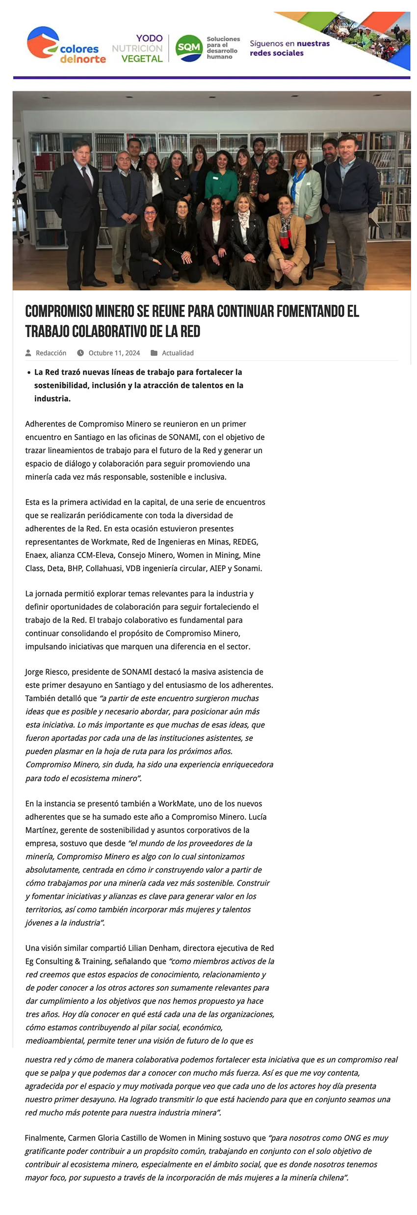 Adherentes de Compromiso Minero se reunieron para continuar fomentando el trabajo colaborativo de la Red - (tierramarillano.cl)