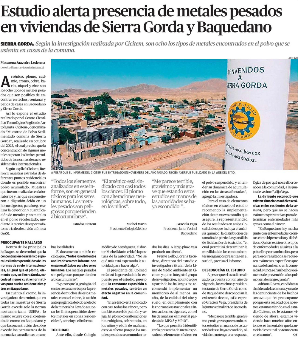 Plomo en Sierra Gorda supera 4 normas de suelos residenciales - (Resonancia Diario (IG).)