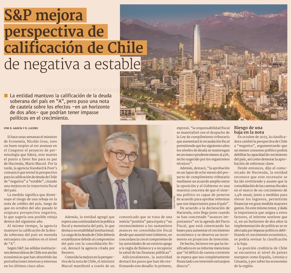 S&P revierte perspectiva negativa de Chile por primera vez en 7 años - (El Mercurio de Santiago)