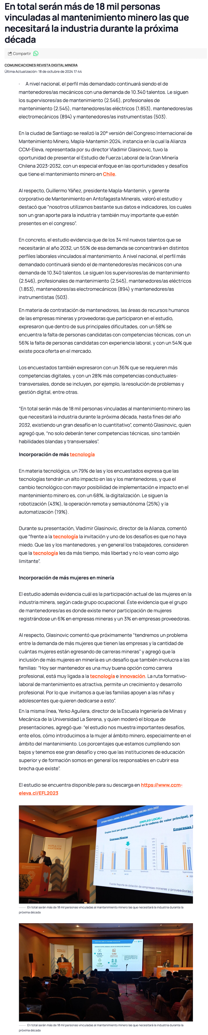 En total serán más de 18 mil personas vinculadas al mantenimiento minero las que necesitará la industria durante la próxima década - (tierramarillano.cl)