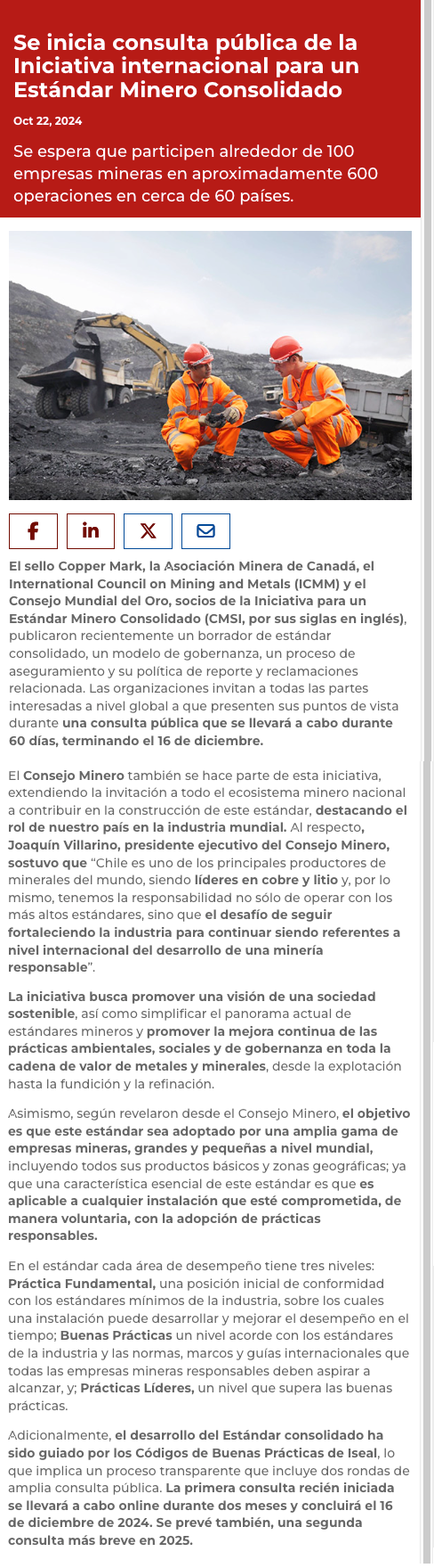 Inicia consulta pública de la Iniciativa Internacional para un Estándar Minero Consolidado - (Nostálgica Online)