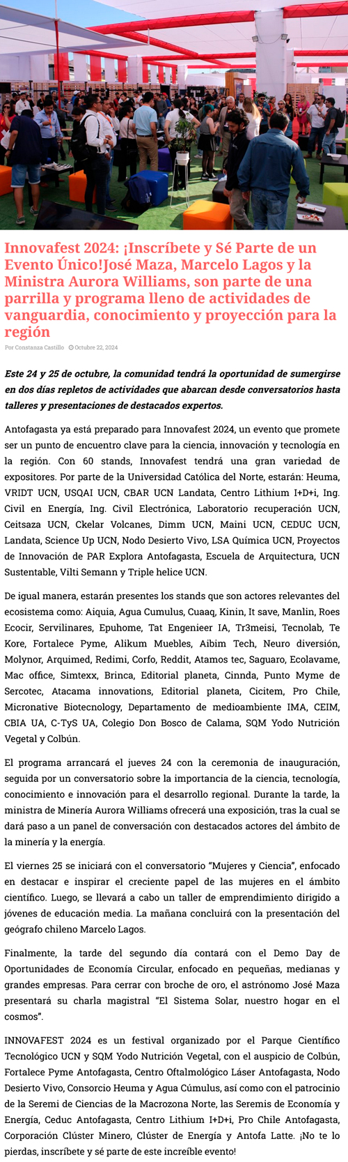 Mañana comienza una nueva versión del festival Innovafest - (El Mercurio de Antofagasta)